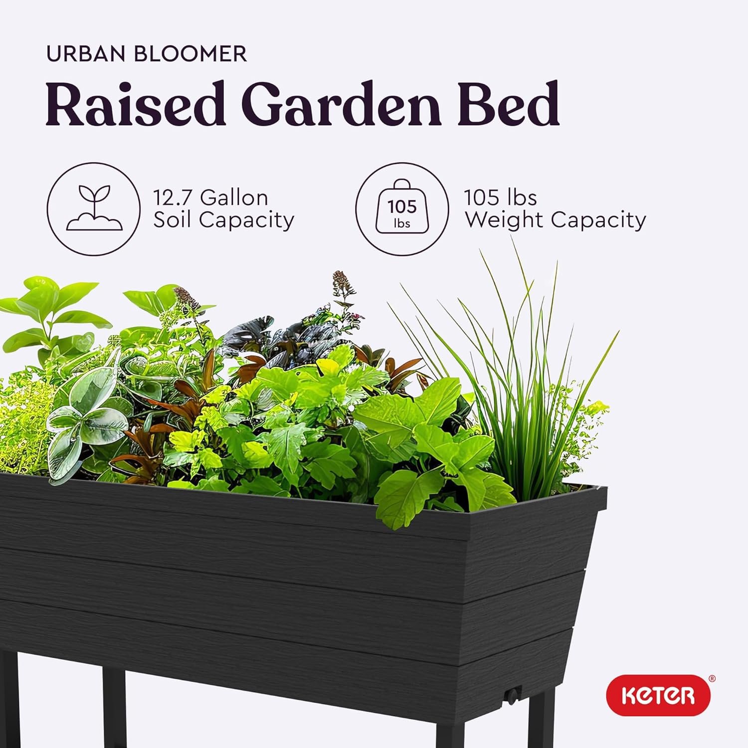 Experience elevated gardening with the Keter Urban Bloomer 12.7 Gallon Elevated Garden Bed — featuring a smart self-watering system complete with water gauge and drainage plug to protect plants from overwatering. Crafted from weather-resistant resin that resists rust, rot, and fading, it holds 12.7 gallons of soil and measures 32.3″ x 14.7″ x 30.7″. Ideal for patios, balconies, or small gardens— click to view full specs.