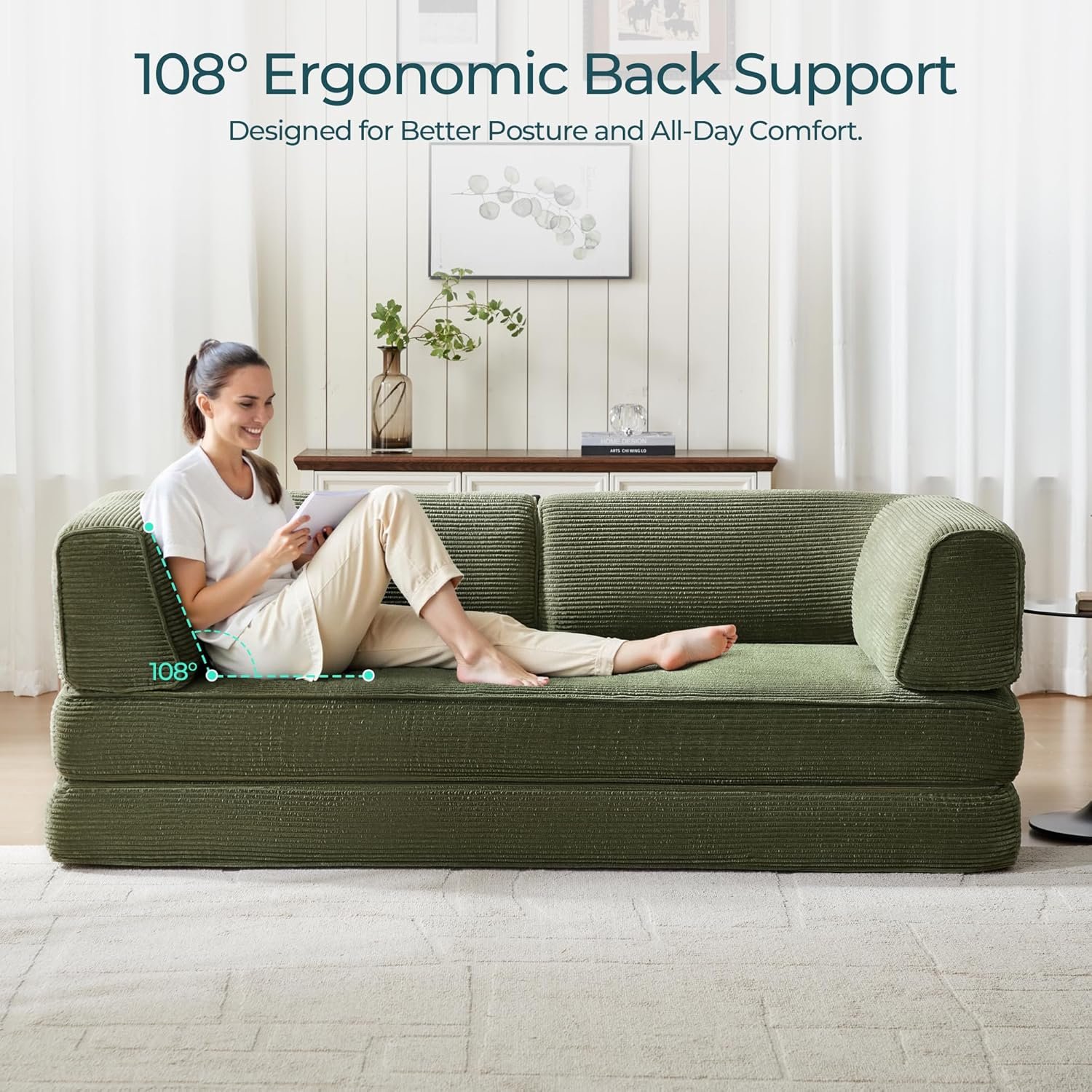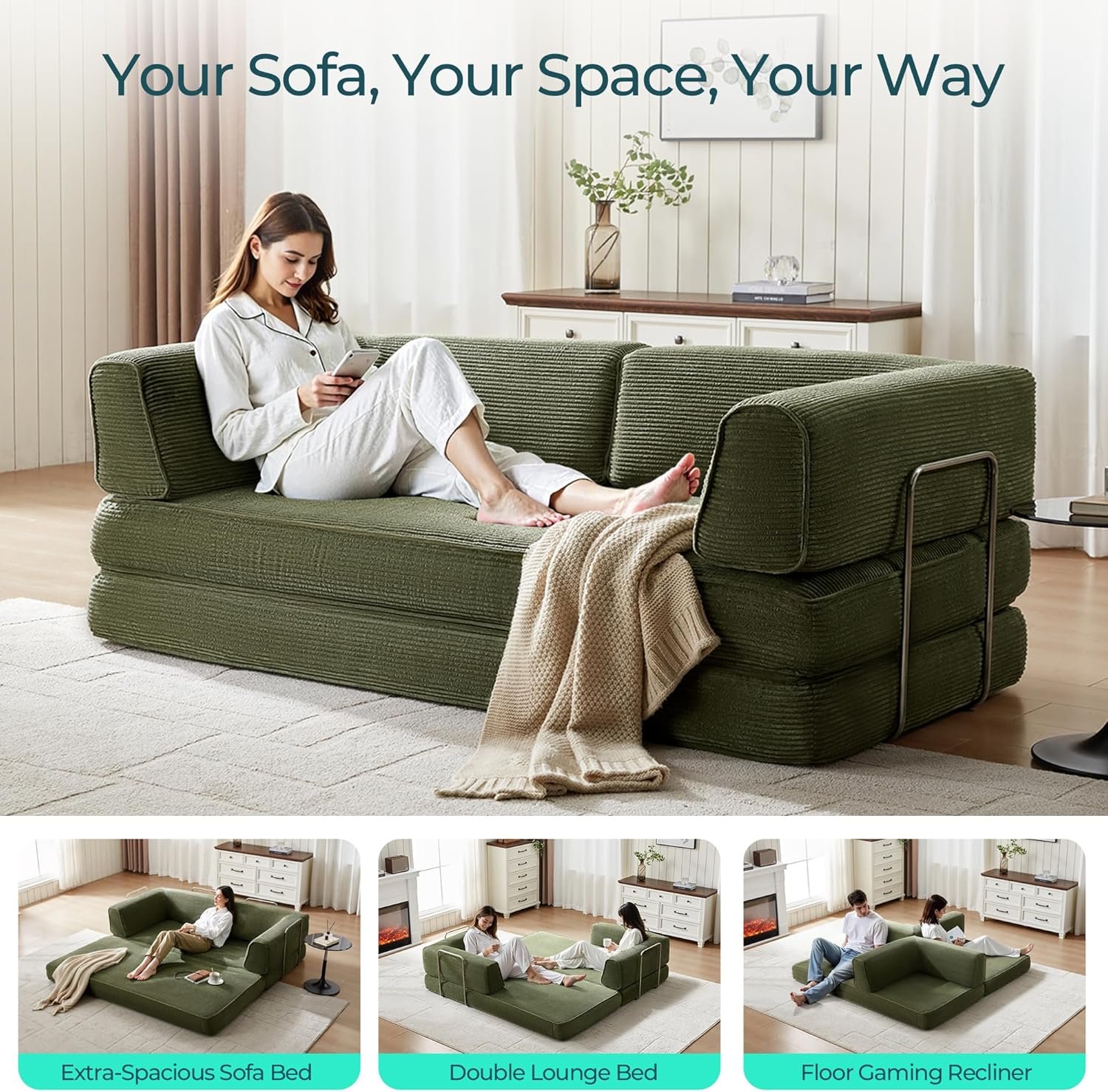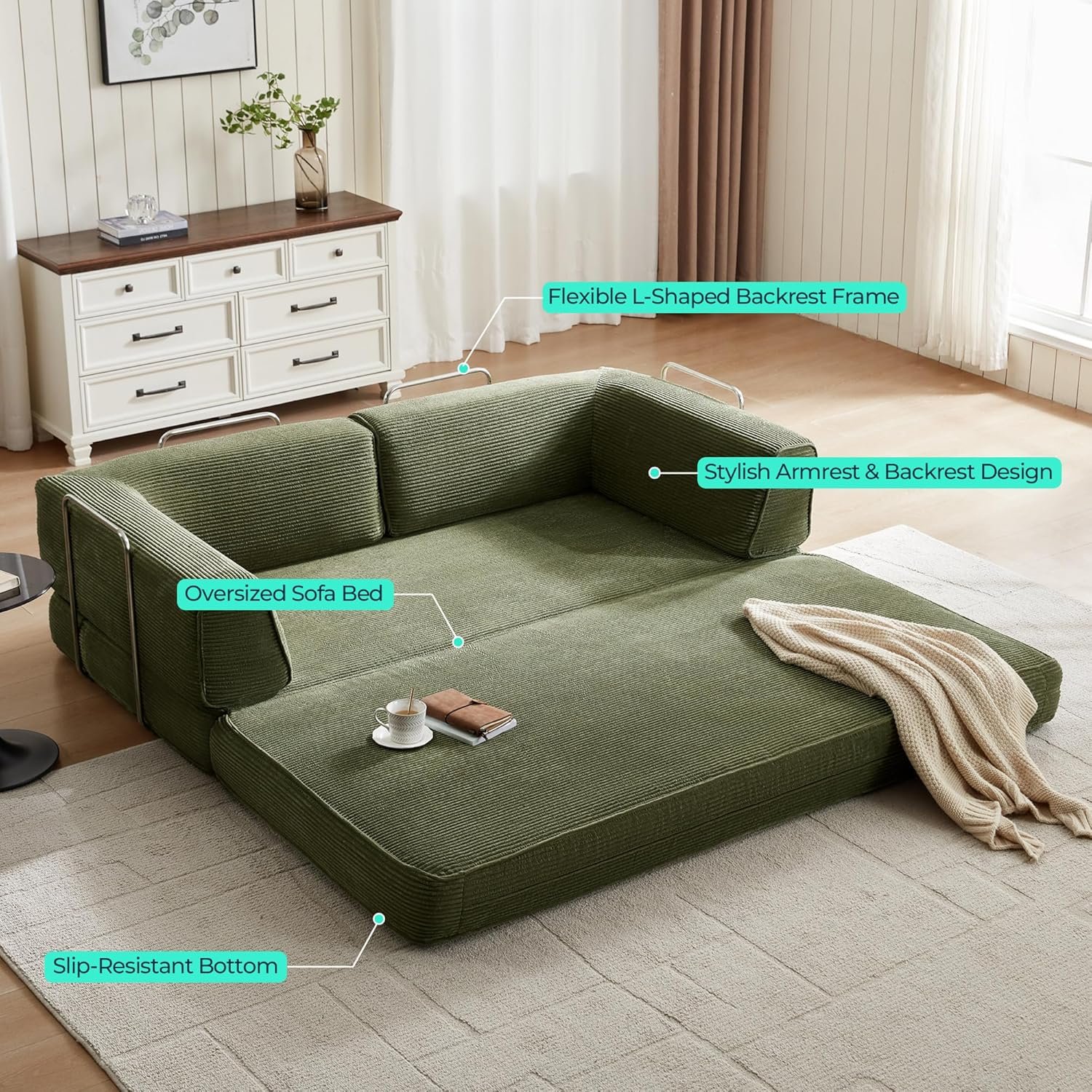 The LINSY HOME Convertible Sofa Bed seamlessly transforms from a stylish sofa to a comfortable bed in seconds, ideal for living rooms, studios, or guest spaces. Upholstered in plush corduroy and supported by a sturdy wood + metal frame, it delivers both comfort and durability. With its modular design, hidden storage, and convenience features, it’s a smart all-in-one solution you’ll want to explore further.