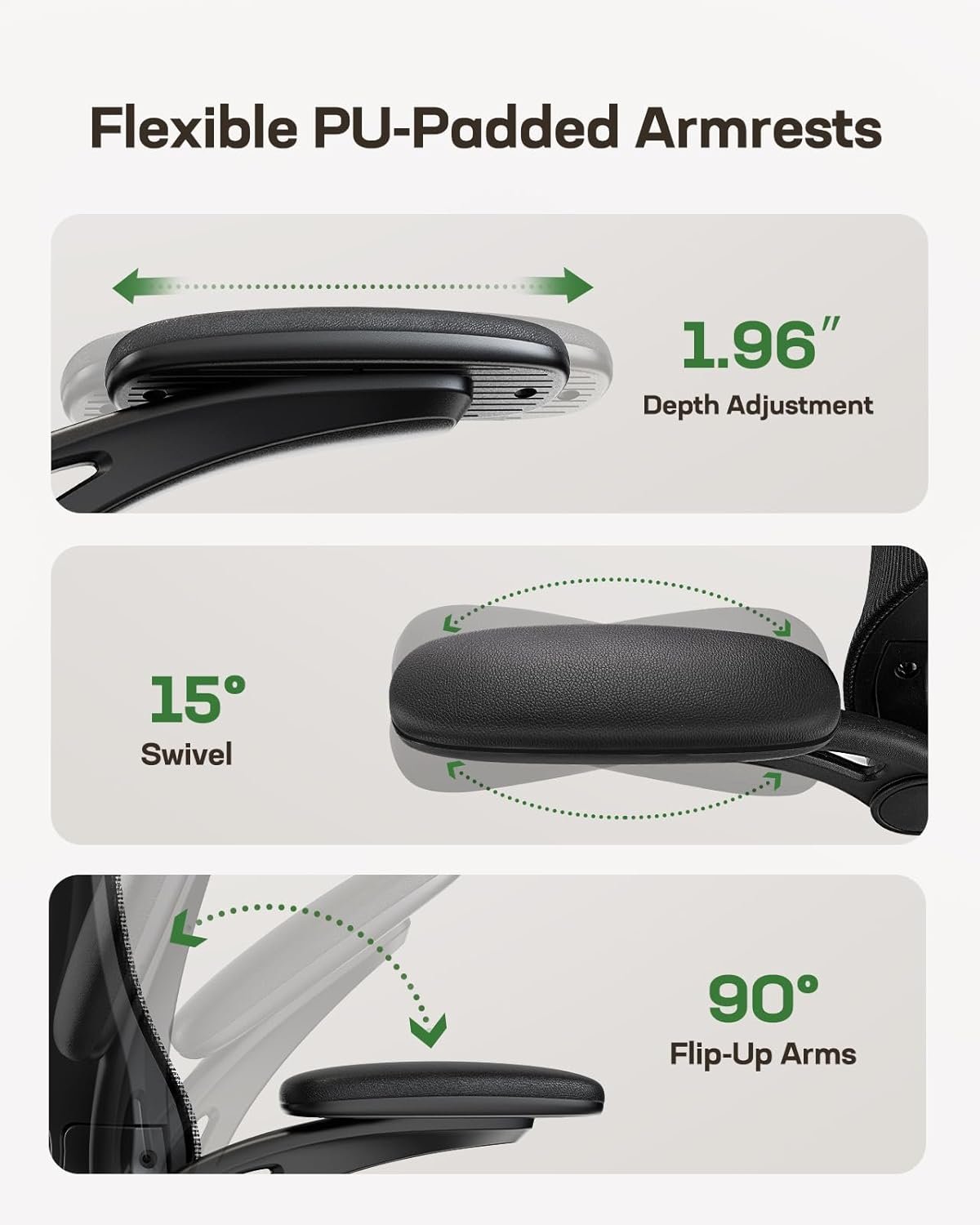 • Adjustability: 3D Armrests, Lumbar Support & 90°–120° Recline